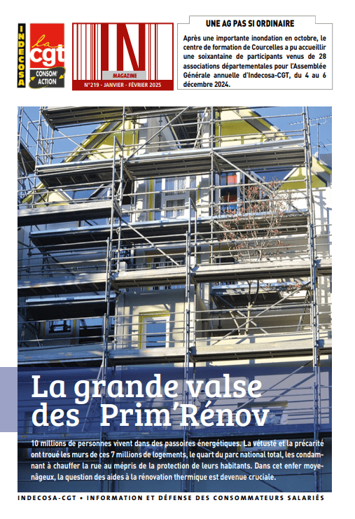 ACTUALITÉ P.2 Courcelles : Une Assemblée générale pas si ordinaire que cela. EDITORIAL P 3 Martine Morel : Préserver et renforcer notre maillage territorial. INTERVIEW P.5 Bernadette Testory : “le consommateur n’est pas qu’une machine à consommer”. BRÈVES P.6-7 Conflit d’intérêts… scientifiques ! • Numérique : des consommateurs consommés ? " 60 millions de consommateurs" Assemblée générale INDECOSA-CGT. INTERNATIONAL P.7 Surpêche et pisciculture : plus de profits que de poissons. DOSSIER P.8-13 LA GRANDE VALSE DES PRIM’RÉNOV FICHE JURIDIQUE P.14 Arnaques bancaires • Usurpation de numéros de téléphone • Tickets restaurant • Cybersécurit