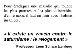 - dénonce auprès des ministères concernés et des élus, l’inadaptation de certains textes aux situations rencontrées (en matière de relogement, de travaux, de suivi de l’intoxication, de prévention)