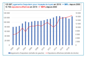 Les loyers6, les charges et l’énergie augmentent, les APL sont réduites, de plus en plus de locataires sont en difficulté. Les jugements d’expulsion pleuvent.