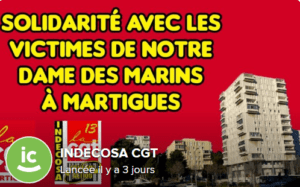 L’Union Locale CGT de Martigues et INDECOSA-CGT ouvrent une caisse de solidarité pour les victimes des bâtiments K et M de Notre Dame des Marins qui ont été évacuées suite à des fissures dans les immeubles.